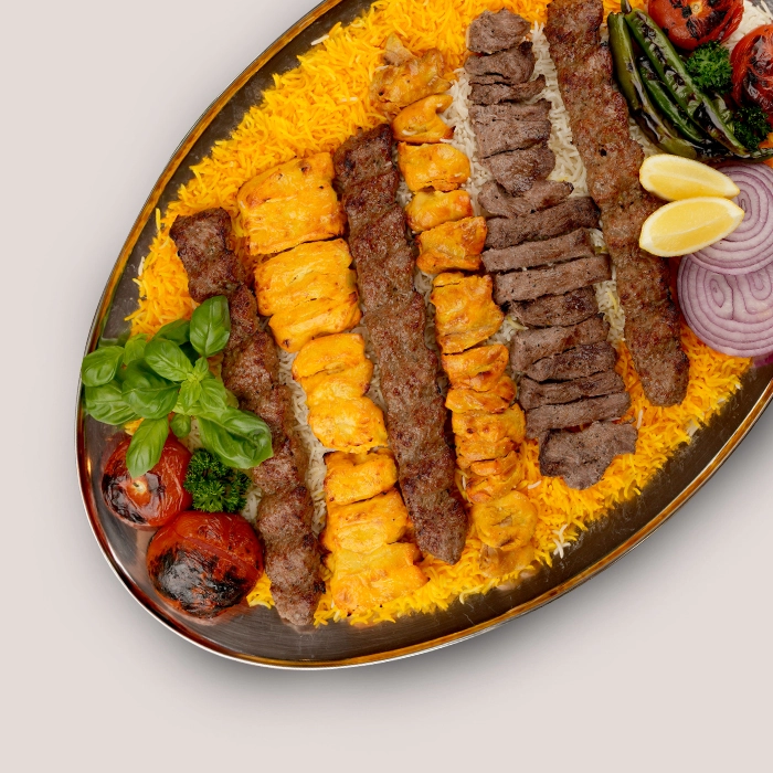 It tastes better when you eat together. It is an old Persian tradition to feast with family, friends, and loved ones. It is always amazing to share tasty moments with others and create memorable gatherings. Our famous Platters are different combinations of Kebabs that make dining a pleasurable social experience.